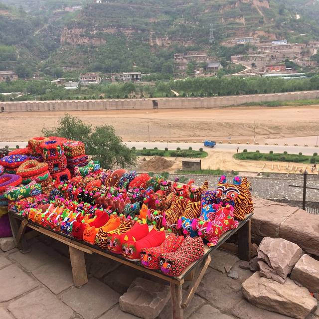 碛口为数不多的纪念品,手工缝制的枕头,小玩偶,价格便宜到让人心碎,我花了15块买了一个绿色的花布兔子。