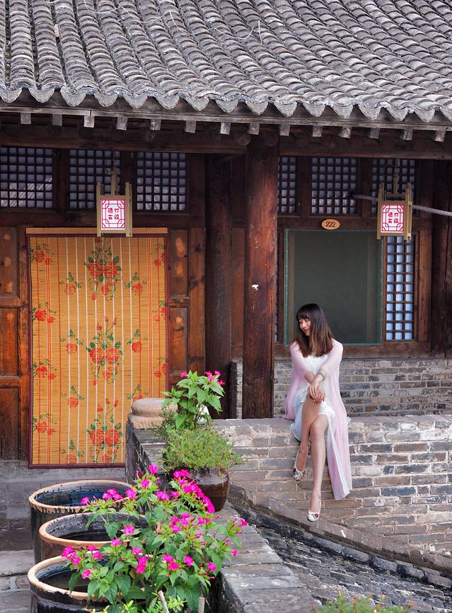 二楼,户牖紧闭。曾经,谁家的大房,妾室们,簇着黛眉,从这二楼的窗口,幽幽地望去,看哪一盏红灯笼在日暮微光下,静默地点燃。好像是老谋子电影大红灯笼高高挂里的情景。很小的时候看过这本电影,还是跟爹妈一起去电影院里看的,小孩不懂这晦暗气氛里涌动的勾心斗角,人性压抑,只是本能的不喜欢夜幕暗透里那一抹猩红色。锦衣玉食的深宅大院,对那时代的女子来说,是不是就像一座巨大的牢笼呢?