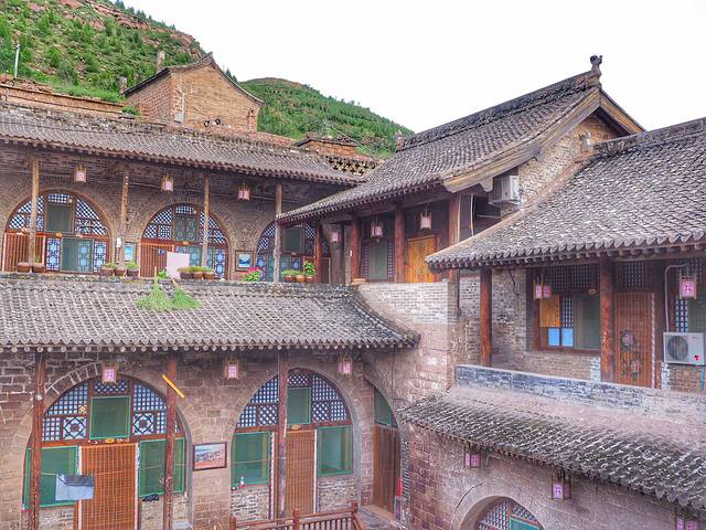 四合院结构。我们住在二楼的一个窑洞房间里,订的高级大床房,其实是睡在炕上的,比较硬,睡了一晚感觉腰都要断了。有热水,可以洗澡,要自己带洗漱用品,没有毛巾,我们问老板买了一条,感觉质量不太好,用了一下掉绒毛。还是自己带比较卫生。