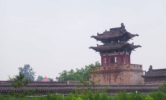 在乔家大院天气不错,一上路就开始下雷阵雨,雨至急处,天地一片白茫茫,完全看不情前路,只能安全起见,以极慢的速度向前开去。好在是雷雨天气,十几分钟后,雨势渐收,到了平遥地界,路面干燥,竟是从未下过雨的样子。这运气倒真的是不错,在路上的时候下雨,到了就晴了,一点都不影响游玩。