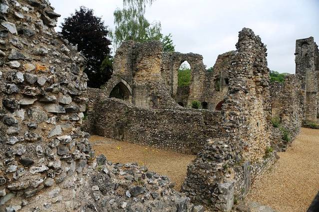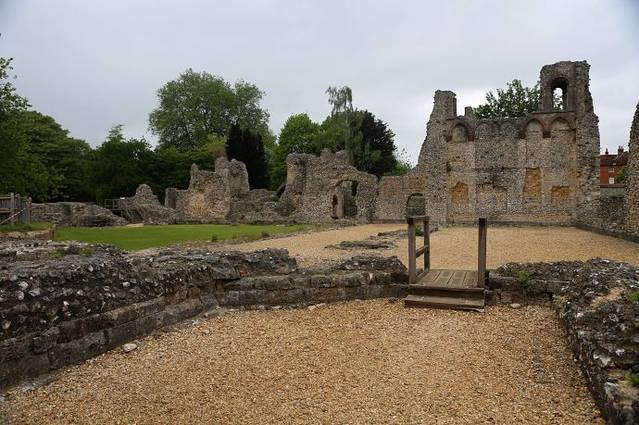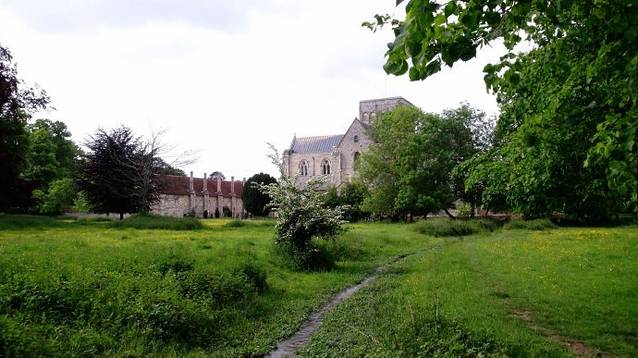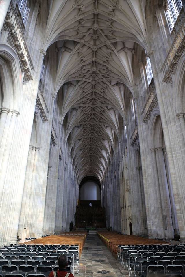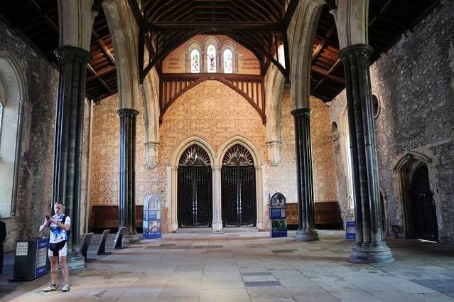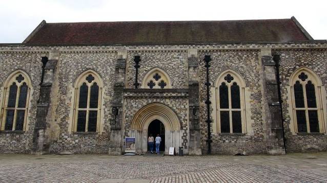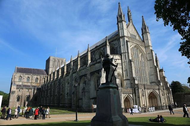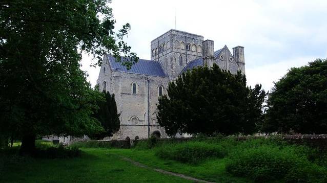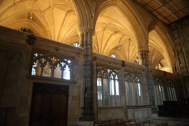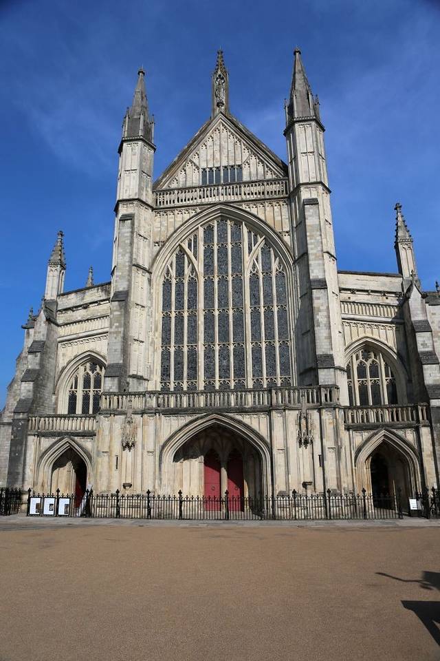 在1093年这座教堂曾经被拆毁。1202年时重新兴建,保留至今,这个教堂无疑有着诺曼式的风格。14世纪,工匠大师威廉·温福特(William Wynford)继续这座教堂的内部设计……”