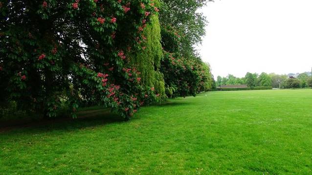 大片的绿地草场,巨大的树木盛开着我们叫不出名字的艳丽花朵