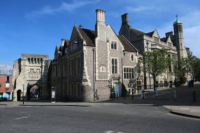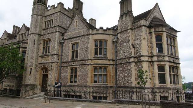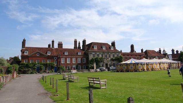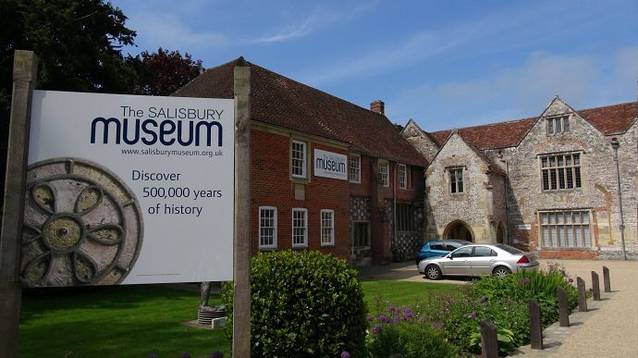 大主教官邸的北侧不远处是索尔兹伯里博物馆(THE SALISBURY MUSEUM).索尔兹伯里博物馆原名索尔兹伯里与南威尔特郡博物馆,2014年更名为索尔兹伯里博物馆。这个博物馆是由17世纪招待国王的迎宾馆“国王官邸”( The King's House)改建而成,1610年和1613年这里曾经两次接待詹姆斯一世国王,也是英国一级保护建筑。