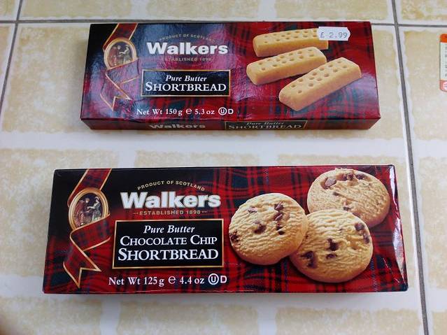 苏格兰纯黄油饼干。我推荐上面的那个不带其他果料的。那个口感更醇厚一些。但是我必须告诉大家,几个月以后,我去家门口不远的一家美廉美超市,居然在超市的货架上看到了完全一样的进口食品。而且价格比我们在英国的市场上买的并不贵。早知如此,我们那么大年纪了,就没有必要大老远的当搬运工了。呵呵。