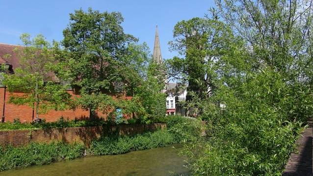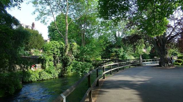 这条从温彻斯特北部山区流过的伊钦河,先在城市的北边形成一片非常漂亮的湿地保护区。在这里你可以看到很多野鸭,甚至天鹅等野生动物。然后,伊钦河进入城区,从城市东门向南,然后向西,将古城拥抱在自己的怀抱里