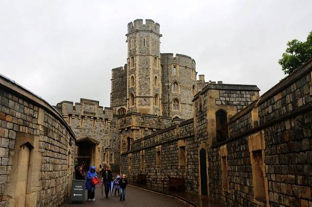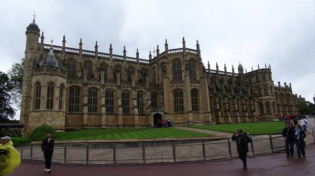 温莎城堡Windsor Castle是每一个来到温莎小镇的游客都会去游览的地方。伊丽莎白女王在英国境内有三处常驻的地方,一个是位于伦敦的白金汉宫,另一个是位于苏格兰爱丁堡的荷里路德宫,前面已经介绍过了,女王通常在每年的夏天会在荷里路德宫度过,因此称为夏宫。还有一个就是这个温莎城堡。温莎城堡位于英国伦敦以西32公里的温莎镇,是英国王室的行宫之一。早在公元11世纪,征服者威廉一世为防范英国人民的反抗,在伦敦周围郊区,建造了9座相隔32公里左右的大型城堡,构成了一道可以互相支援的碉堡防线。温莎古堡是9座城堡中最大的一座,坐落在泰晤士河岸边一个山头上。温莎城堡建于1070年,迄今已有近千年的历史。1110年,英王亨利一世在这里举行朝觐仪式,从此,温莎古堡正式成为宫廷的活动场所。直到今日女王仍然经常来这里,每年伊丽莎白女王住到这里的时候,城堡上就会升起皇家的旗帜。1992年大火烧毁了许多房间,现在大部分已整修完成了。我们来得时候看到依然有部分区域还在施工中。