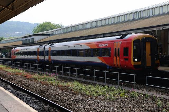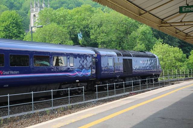 对面站台上停着一趟我们从布里斯托尔到巴斯乘坐的那种自带动力的机车。这种机车中国国内还没有。最近中国中土集团承建了尼日利亚的地铁项目,采购的车就是这种车型。
