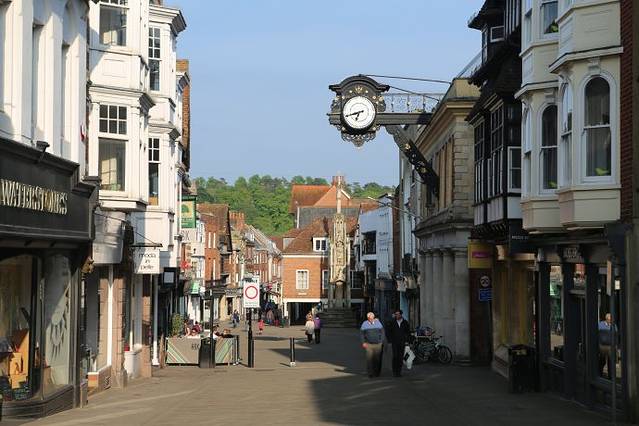 图片上我们看到的这条大街,就是这个城市的主街High Street , 大街上的那个铜像就是阿尔弗烈德大帝树立的铜像。至此,我们已经大致了解了这个城市的古老历史,更难得的是,即便是诺尔曼征服者威廉1066年将首都迁到伦敦之后,这里依然保持了相当一段时间的繁荣,接待来自各地的巡礼者。英国的工业革命也没有波及这里,你在这个城市了行走,看不到一个工厂,甚至看到所有现代化城市都少不了的高楼大厦,整个古城一直保留着中世纪的城市风貌。这里也是温彻斯特大学,南安普顿大学温彻斯特艺术学院,还有与伊顿公学齐名的英国顶尖男校温彻斯特公学(Bishop of Winchester)所在地。温彻斯特大教堂是英格兰最大的教堂之一,也是全欧洲拥有最长中殿的教堂。英国著名女作家简•奥斯丁还长眠于此地,因而吸引了众多游客慕名而来。这里有着英国其他城市少有的宁静,安详和特别幽静的田园风光。这也是我们特别喜欢这个城市原因。