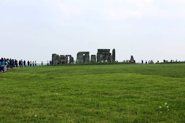 坐上摆渡车,再向原野深处走大约7--8分钟。等车停下,你就会看到人潮涌动的远方,就是那个神秘的巨石阵了。