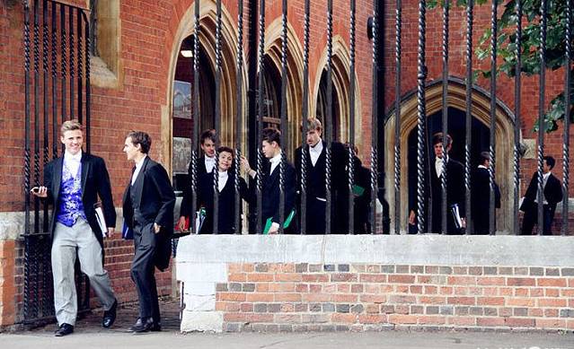(网络图片)在黑色燕尾服中,有一些带披风的,那是国王奖学金获得者的标志。(伊顿校服最早是乔治三世去世时人们为悼念他而穿),