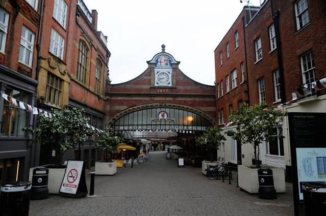 10:56分在温莎中心站下了火车。下车后,没有出站检票,直接就进入了一个非常繁华的商业街。路边是数不清的精品店和餐馆。