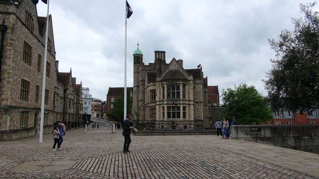 因为明天一早将要乘车赶往温莎城堡,在这个最后的下午,我们抓紧时间参观了两处历史悠久的古迹。一个是曾经的皇宫所在地Peninsula Square,另一个是建于1130年的英国最古老的救济院 The Hospital of St Cross。翻译成现代词应该叫做贫民救助中心吧。