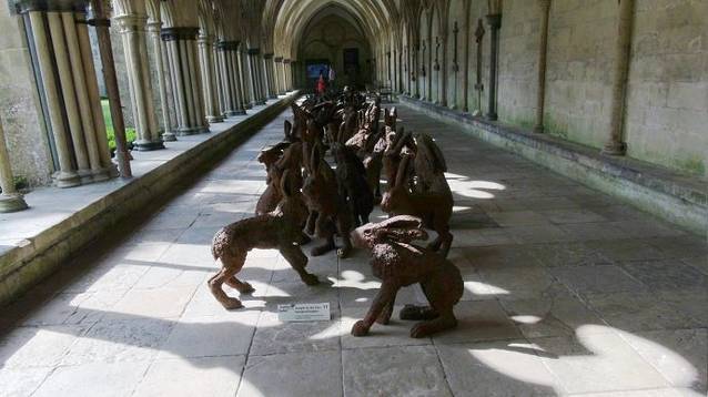 Salisbury大教堂回廊里展出了Sophie Ryder 创作的200个形态不同的兔子。