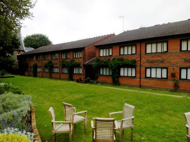 前面我们介绍过的温彻斯特的那些有趣的历史遗迹,几乎都集中在老城区。唯独这个救济院或者叫做贫民院,在南边距离城市中心区较远的地方。沿着ST CROSS ROAD 向南步行了大约20分钟,感觉已经走了很远了。应该到了,可是我们依然没有看到,于是决定停下来问一下。温彻斯特其实是一个特别安静的城市,游人很少。找到一个可以问路的人也不容易。等了一会儿,一位约50多岁的中年人从这里经过,我们就上前问路。那个人很好,他说,请等几分钟,我到对面的商店里取点钱,一会带你们过去。我们担心打扰到人家,说,只要告诉我们走那条路,有多远就成了。他说,不打扰,我正好也要到那边去。