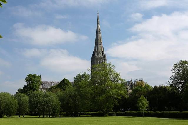 这就是我们昨天在旧塞勒姆曾经远眺过的Salisbury大教堂。大家都知道英国几乎每个城市都有数座教堂。那么这个漂亮的Salisbury大教堂有什么看点和与众不同呢。