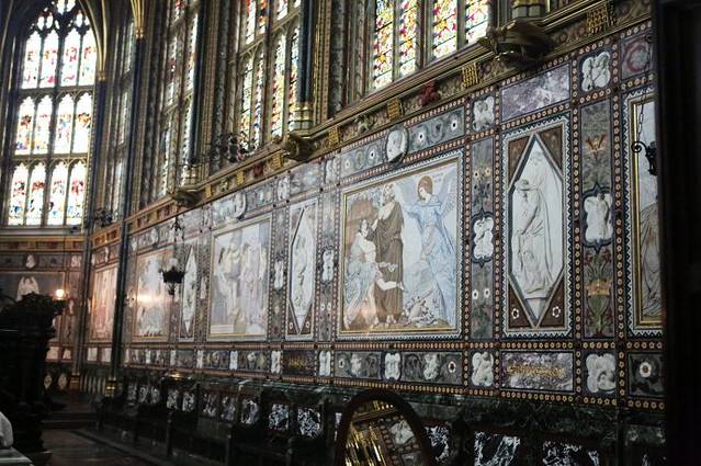 礼拜堂墙面的壁画异常精美,这种壁画在英国的其他教堂很少看到。教堂里还有英国各种骑士勋章的展示。这里每年6月初举行嘉德勋章爵士的仪式,届时女王会亲自出席,如果幸运可以亲眼目睹女王的丰采。
