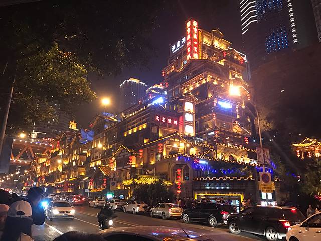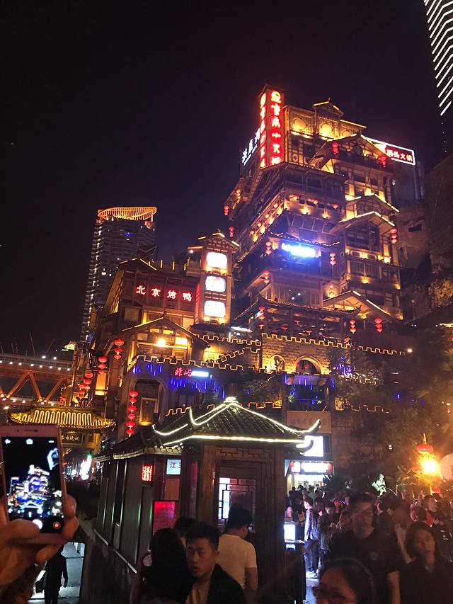 非常奇妙的建筑!以具巴渝传统建筑特色的“吊脚楼”风貌为主体,依山就势,沿江而建。整个有十一层,层层叠叠,错乱有序。极具观赏性!被誉为现实版的“千与千寻”
