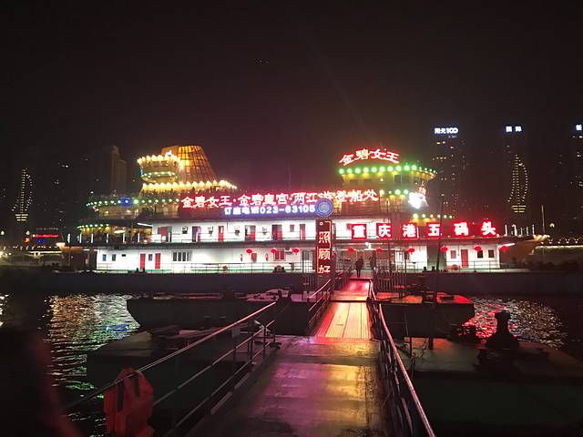 下了洪崖洞就有推售船票的,在朝天门码头乘船游览夜景也是一大特色!美景尽收眼底,不辜负“小香港”之称