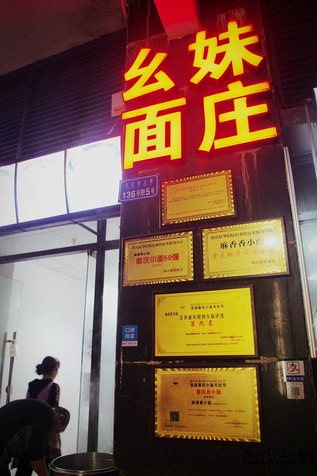 放好行李办好入住已过饭点,一行决定去吃十八梯眼镜面填肚子,要了招牌牛肉面,一碗28块,量很足3人2人份刚好,面条筋道,牛肉大块不老,因为是山城的第一餐,所以叫了微辣,事实证明很够味,这家面店一度是夜宵返场的热选。