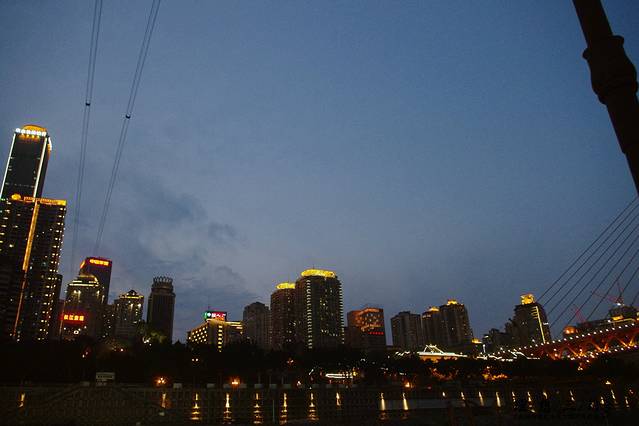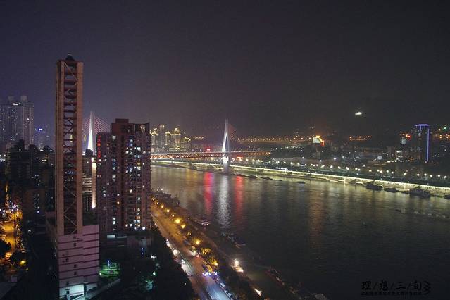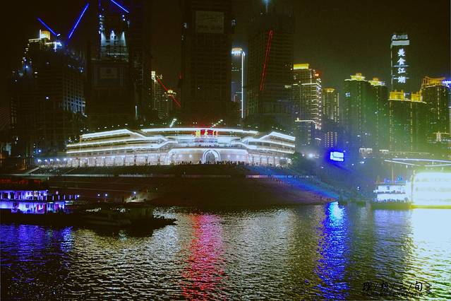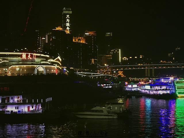 重庆很出名的两江交汇,长江与嘉陵江,在朝天门码头可以买票乘船进行两江游,赏夜景。