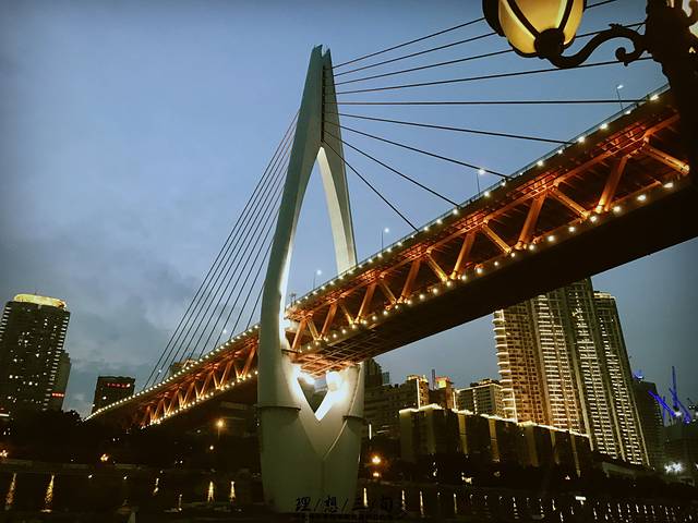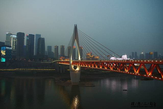 洪崖洞旁的千厮门大桥,桥上走人走车,桥下过轻轨。