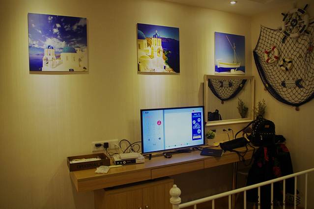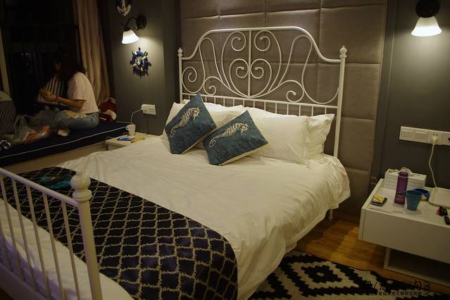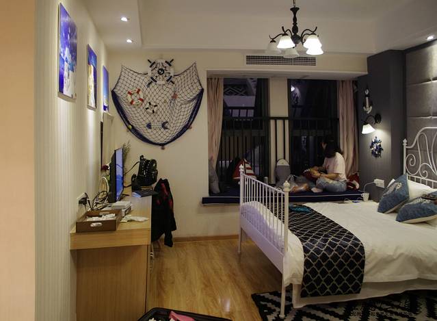 地中海风套房带卫生间和厨房,一张1.8m的床+一张1.5m的床。提供免费送机服务,提前跟房东说就好。