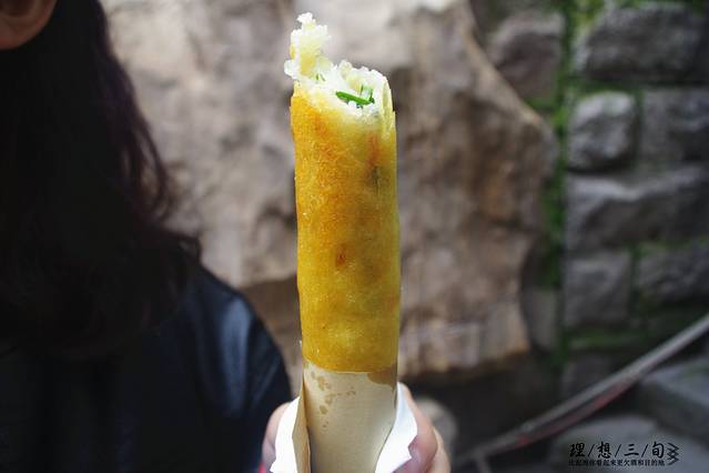 一个看起来很厉害的道士爷爷卖的春卷,有香蕉香芋素馅的,6块1根,素馅的好吃,其他口味的不好吃。