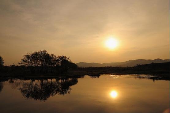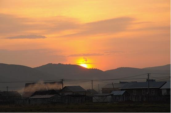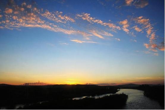 恩和,一个俄罗斯田园风格的小镇,头一天晚上我好几次跟小伟童鞋确认好有河、树还有成群牛羊的方位,之前查过,这里的日出是5:30——6:00之间,于是第二天我闹钟一响洗漱都顾不上就往那个方位奔去,好姗姗看我这么早出去也起来陪我,么么哒