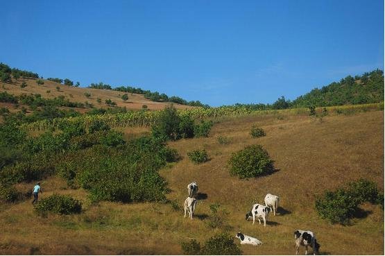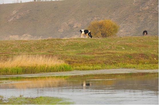 恬静的清晨,山那头太阳还搓搓惺忪的睡眼,恩和还沐浴在晨曦氤氲的怀抱中,就听见“叮当叮当”清脆的铃铛声传来,原来是成群的奶牛儿睡不着觉背着日出出来觅食了···