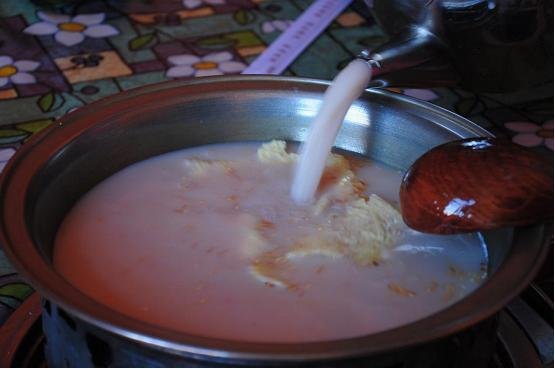 对于并不是吃货,比较好养活的的我来说,吃饱就行,而小伟童鞋带我们去吃让我印象深刻的就数在得耳布尔(什么店?)吃的铁锅炖(这一餐也是我们行程中最奢侈的一餐370元):铁锅里放下鹅肉、木耳、土豆、酸菜等等,再在上面放个拼盘,拼盘上放着未蒸的条状花卷,再在封好的灶下烧着干柴,等待吧~你是否闻到了那飘香吞了口水?~哈哈)