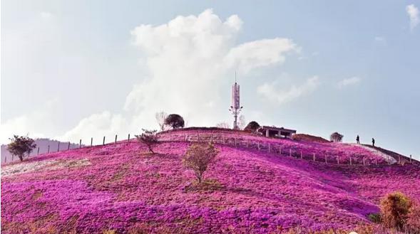 无论近看还是远看,这片紫色非常的明显。在青山绿水中,这片紫色如此的显眼。