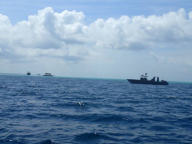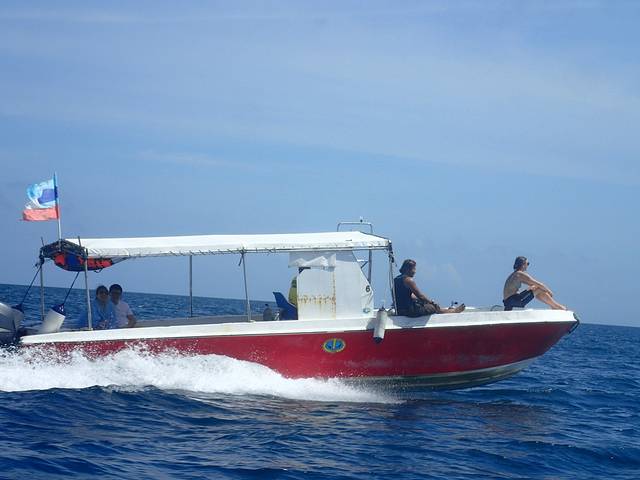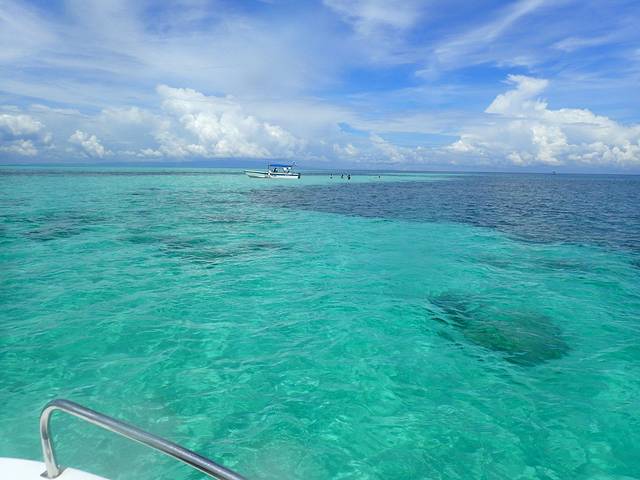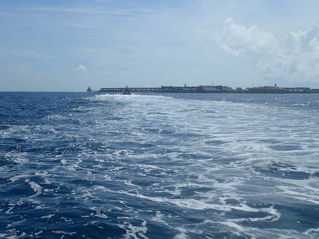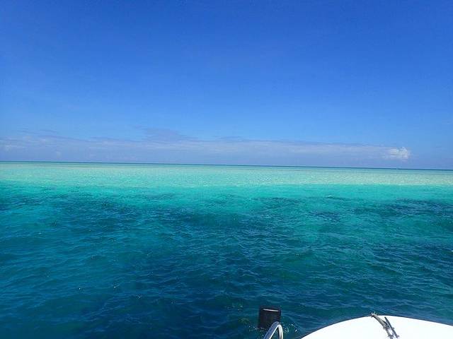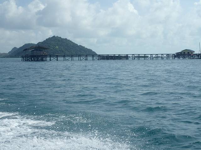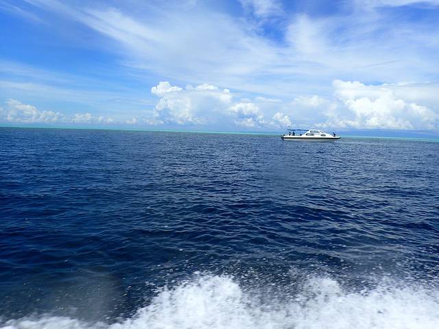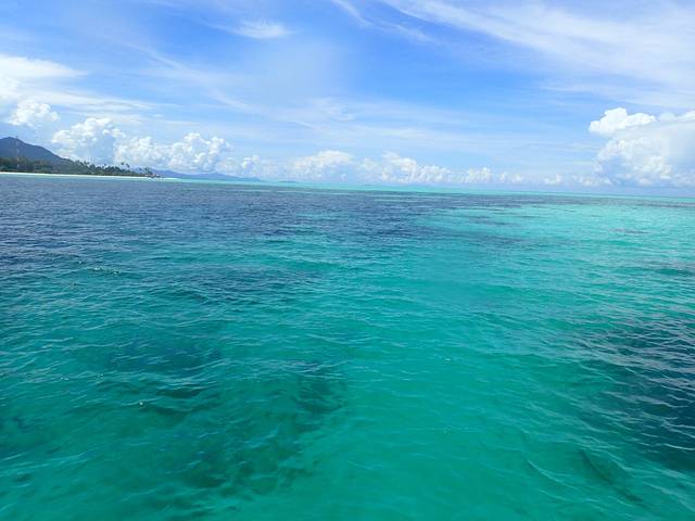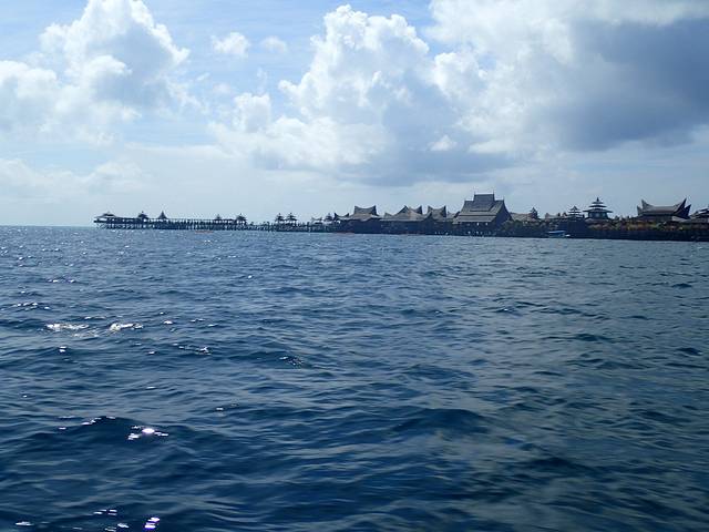 大概八点半我们离开码头,坐快艇从镇前往墩沙卡兰海洋公园。船开出没多久我们就很兴奋了,快艇的刺激,乘风破浪的感觉,纯净的海域,碧蓝的海水,真的是太美了!船开得太快,风浪很大,脸和身体都被溅起的海水打湿了,大家抱作一团。