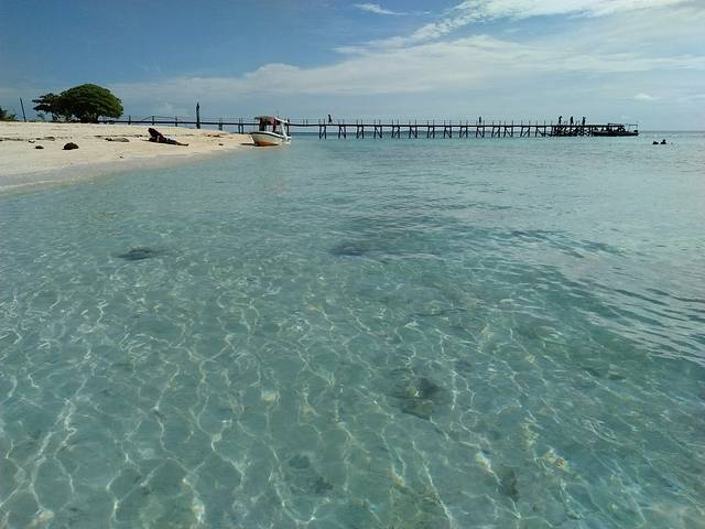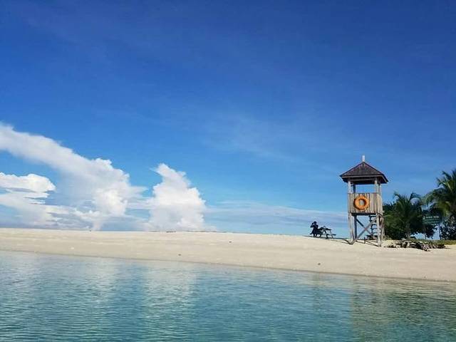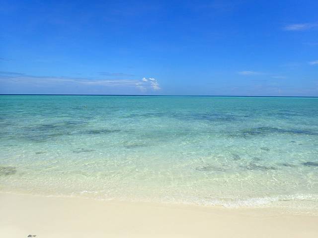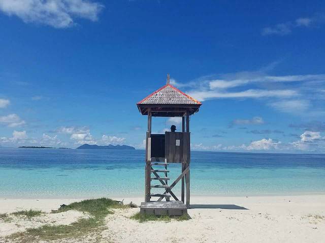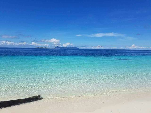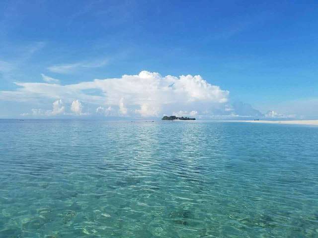 军舰岛不大,水流平静,水质和沙滩无敌的漂亮。军舰岛是仙本那周围开放岛屿水质前三名。这里水超蓝超清澈,在海面就可以看到很多海星和珊瑚。岛上没有常住人口,因为没人居住才如此生态干净,美得令人心醉。