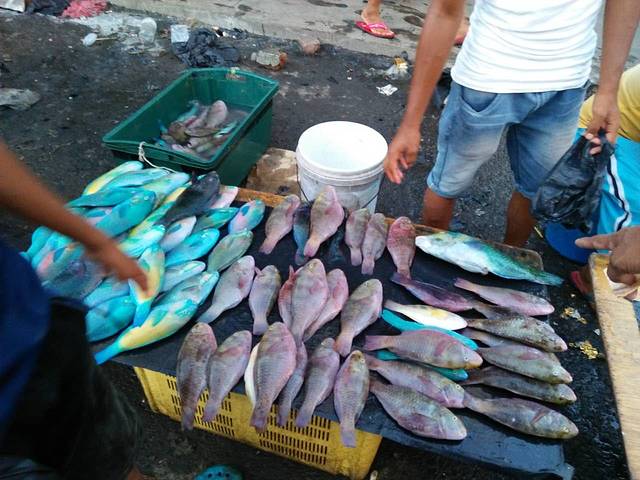 仙本那赤道的太阳太厉害,今天又被晒伤了。下午回到镇上,又出去逛,今天专门去看看传说中的仙本那童话般的清真寺。仙本那清真寺就在附近,路过集市,下午集市上各种新鲜的五颜六色的海产被整齐排列出来,价钱非常便宜,可以自己挑选拿到当地的餐馆加工或者到酒店民宿自己烹饪,但是就我第一天买石头鱼到海鲜楼加工来说,加工和点菜差不多,有时还要贵一些。不过买海鲜加工自有乐趣!