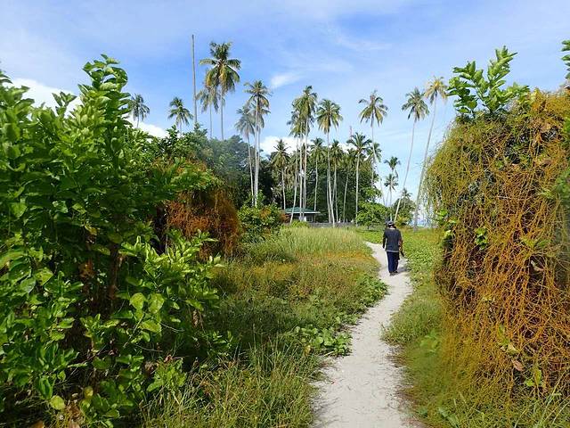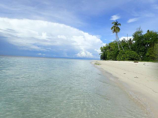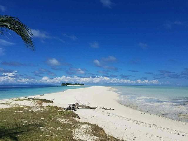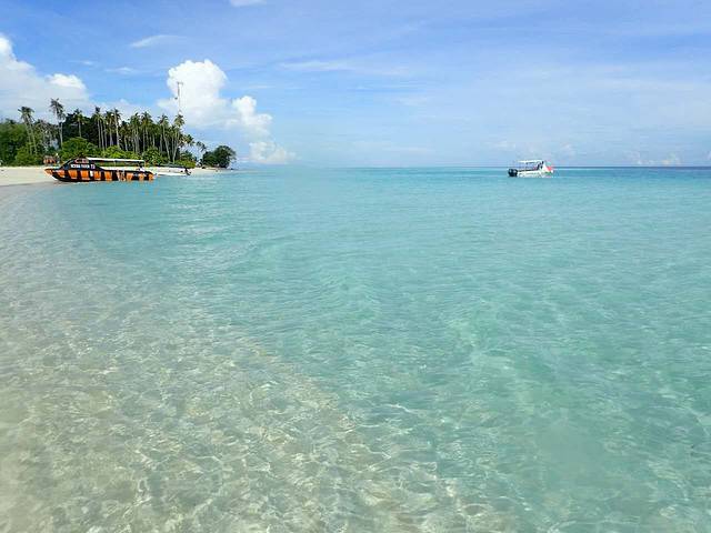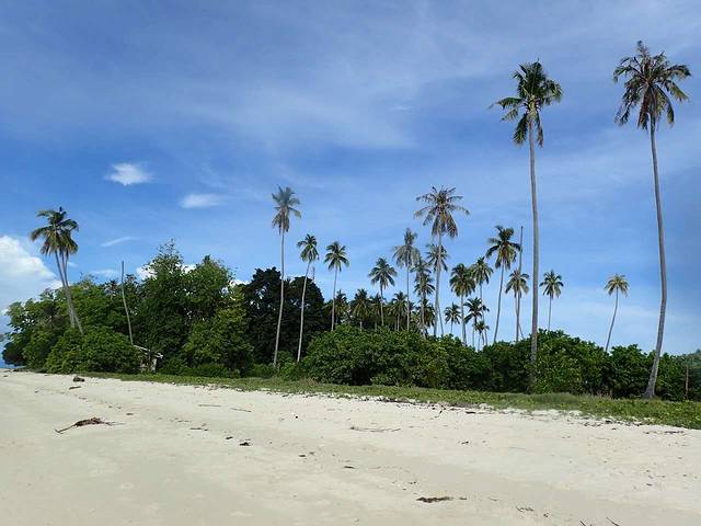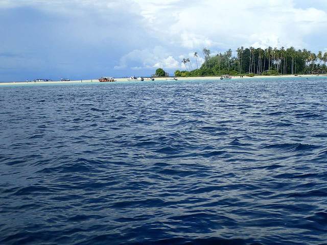 今天的最后一个岛。远远地看到外形似军舰的小岛,故曰军舰岛。军舰岛距仙本那镇约45分钟船程,为无人海岛,岛上高大的椰子树直插蓝天,洁白的长尾沙滩缓缓伸入碧蓝的海水中。下船后,无比激动的我离开玩伴首先奔向了那片从海里延伸出来的洁白的沙滩,沙滩洁白柔软,海水清到极致,太漂亮了。