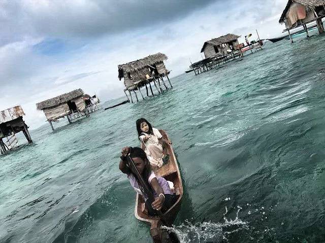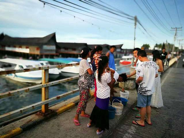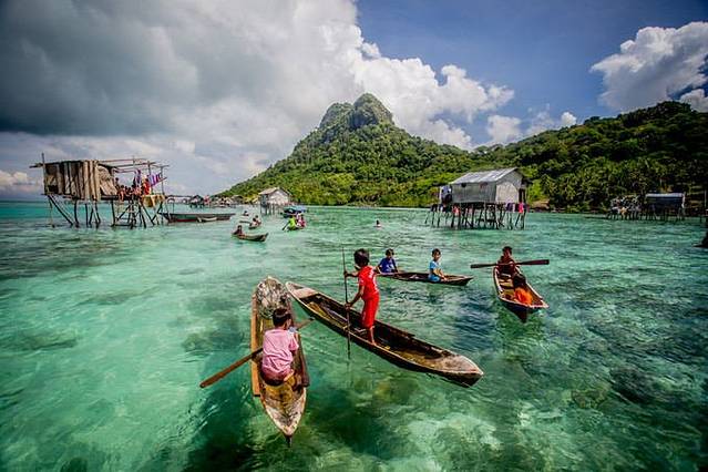 大约半个小时后,便来到了今天行程第一站,古老淳朴的仙本那小渔村,海上巴瑶族的居住地。巴谣族,是世界上唯一没有国籍和身份,地球上最后一个海上游牧民族,数百年来分散生活在东南亚各岛屿,他们靠潜海捕鱼为生,并得到马来西亚政府支持维持生活。巴瑶族离不开海,他们世世代代在海上漂泊,以海为家,居住在简陋的高脚屋里,四处迁徙,甚少踏足土地,被称为“海上吉普赛人”,这里成为人文摄影的最佳取景地。巴瑶族小孩个个都是很厉害的free diver,因为要潜入深海捕鱼所以在很小的时候他们的耳膜就被刺破。这里的居民很黑也很穷,衣衫褴褛,生活艰苦。