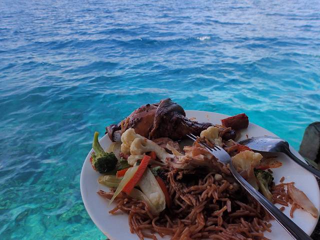 浮潜结束后,在珍珠岛吃午餐。面朝大海,吃着可口的饭菜,真是惬意!