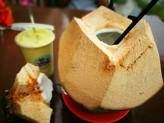 在仙本那海边吃了第一顿马来式的午餐,让我的味蕾第一次感受到正宗异国风情。牛油果冰沙,海鲜面,菠萝海鲜炒饭,调一些当地的辣酱不仅色泽好看还特别好吃,这么大一个椰子只要4马币,喝到肚子撑,后来在附近街边看到一个椰子只要2.5马币,不过比这个要小。