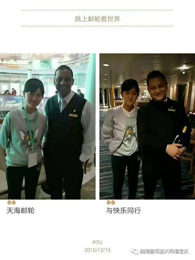 天海邮轮是以欧洲绅士淑女礼仪,与中国传统式礼遇的完美结合。 希腊船王钱德里斯送给酷爱收藏的太太的一份爱之礼物,内部装修华丽,而且还搜集了毕加索、安迪沃霍等大师的珍贵名作天海邮轮可以说是我在2016年走的第二艘豪华邮轮,作为2016年12月13日的天海邮轮体验家我感到万分的荣幸,这次的旅行也是让我感到受益匪浅,交到了几个特别热情的外国朋友,当然我相信我的朋友前途无量一定会有更大的升职空间。