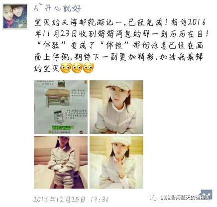 2016年11月23日正在聚精会神的上课忽然接到了妈妈的电话!看来妈妈也是高兴的居然忘记了我在上课!马上挂了电话,发来微信,说还要带我去邮轮体验,我慌忙的却看成了“体检”!
