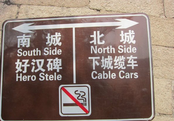 八达岭长城有两条路线,南线和北线,指示牌上写的是南城北城。南线是往返路线,要原路返回,一共7个台楼;北线是环形路线,出口出来直接是熊乐园,一共11个台楼,好汉坡在北8楼。