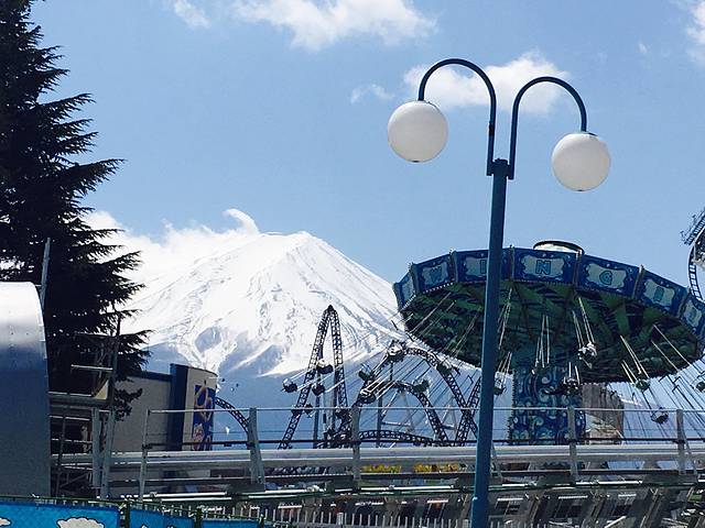 富士急乐园就在富士山边上 所以在乐园里面是可以看到富士山的!乐园里还专门有个过山车是用来观赏富士山景色的(当然只是起初的十几秒随后就完完全全对得起过山车这个名字了(●--●)富士急乐园一共有3个刺激极限型过山车 这个过山车也是富士急乐园的招牌 名字是【FUJIYAMA】)