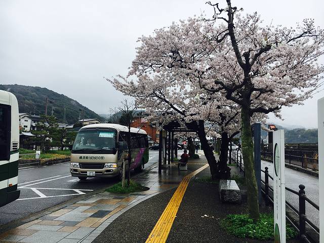 JR岚山站 和 这个观光小火车的岚山站 不是一个站 我是当场买的票 比较幸运有座票还是第五车厢 第五车厢是唯一一个不封闭的车厢 就是没有窗户和玻璃只有护栏伸手就可以摸到樱花的那种