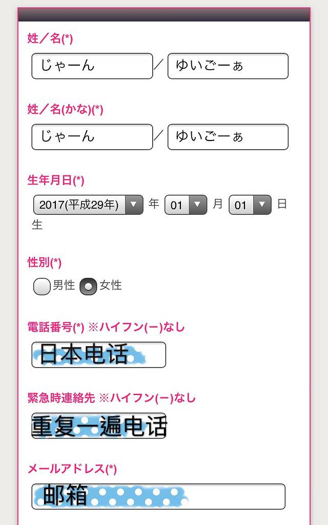 记号你的平假名 复制好进行注册 如图填写基本信息(日本的电话可以填写酒店或民宿的)