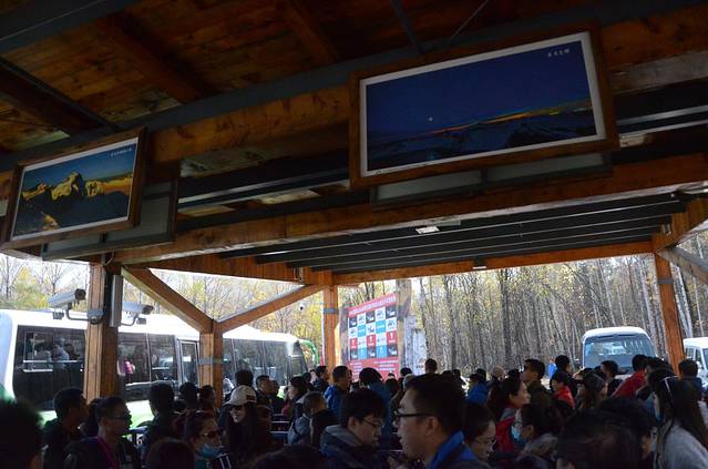 西坡也需要排队等环保车,这人比昨天北坡的队伍明显少很多,不知道是不是因为时间早的原因。