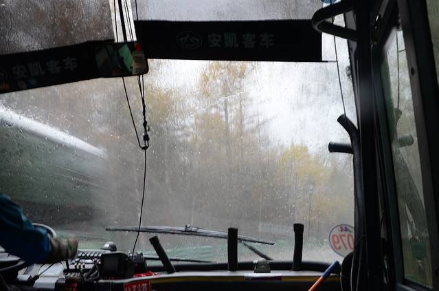 好不容易坐上车,就开始下大雨,噼里啪啦的,然后车上开始广播“由于天气原因,主峰已经下雪,主峰关闭......"我的心都碎了