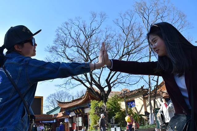 再次启动召唤路人合照模式,旁边的阿姨不知道在等什么,还是纯粹的发呆。但丫丫只是在装逼啦