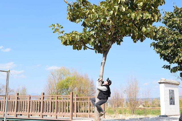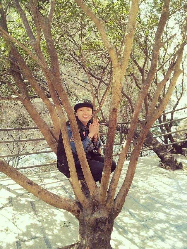 这货跟个树合影就算了,还带半躺着的。借着这跟彩带我也不能帮你拍出小龙女的睡吊绳的感觉呀,谁让你不是白裙飘飘自带仙气的人呀