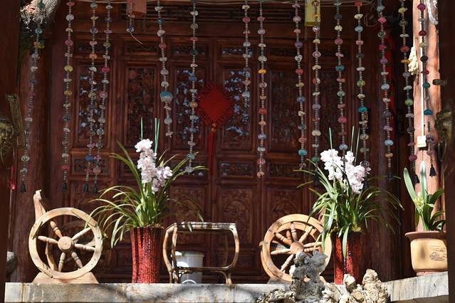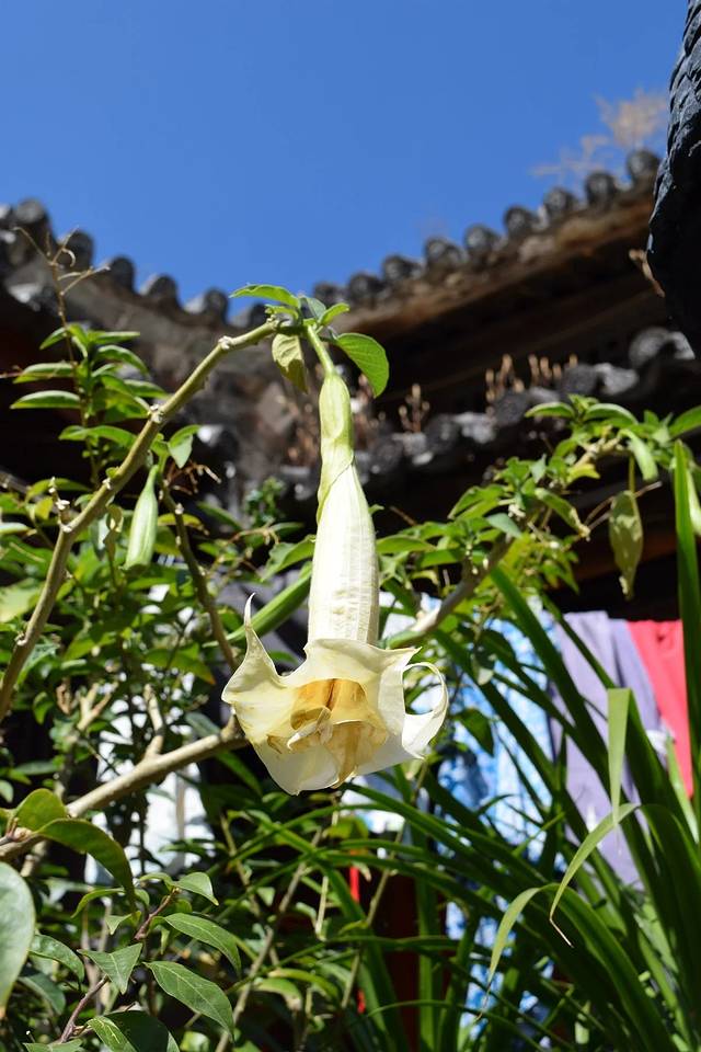 由于是下午六点多的飞机,上午没有行程安排,玩了几天还是有些累了,所以上午睡到了10:30,收拾一下直接吃午饭,下午在古城周围在逛逛,路过花开正盛的旅馆门口。