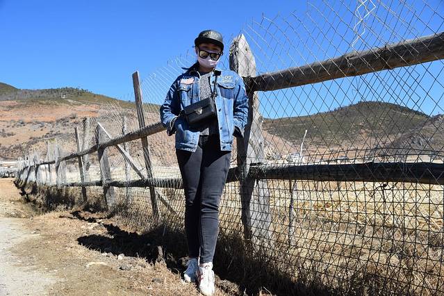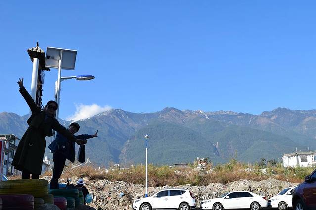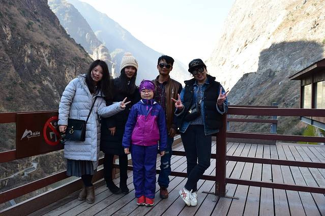 虎跳峡景区下车,让扎西上了个镜,他是我们两天行程的司机兼导游,藏族人。一上车就告诉我们不能在车上梳头和脱鞋子。。。小妹妹是同行组团的家庭成员,甩开了她爸爸妈妈跟我们合影。